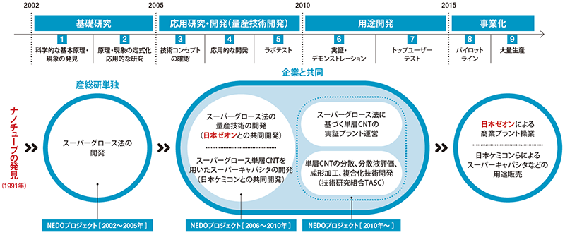 産総研が基盤技術を開発し、課題を乗り越える解を見つけて、日本ゼオンに提供する。日本ゼオンはそれを受けて解決し、発展させ、安定化させる。共同開発はそのような役割分担で進められていった。