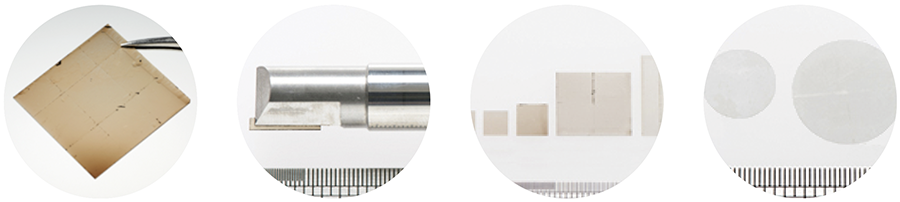 (中央左)切削工具用素材:スマートフォンなどの表面を磨く安定で均一な素材や、10 mm超の長い刃先を形成できる素材。
