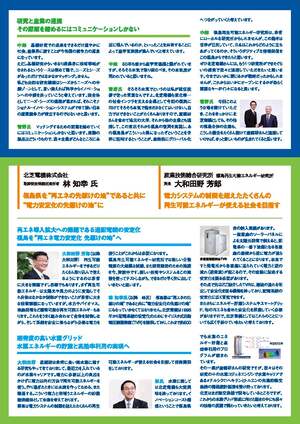 北芝電機株式会社(福島県福島市)において、北芝電機株式会社 取締役社長 管野義知氏と弊所 理事長 中鉢良治との間でトップ対談が行われました。東北・福島の復興へかける思い、再生可能エネルギーに関する技術のシーズとニーズに関する情報交換、地元企業と福島再生可能エネルギー研究所との連携強化、などについて話し合われました。
