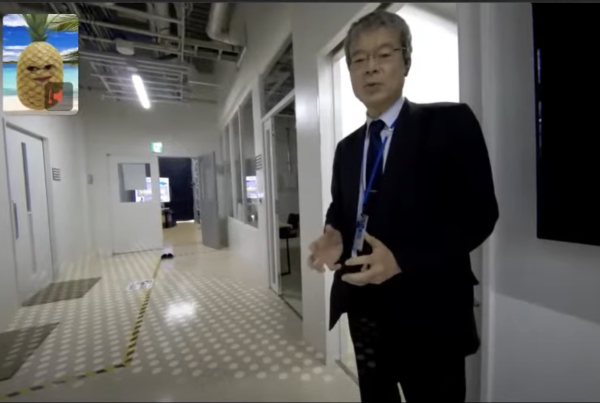 上の写真は、廣島所長がアバターロボットに乗り込んだ参加者に柏センターの紹介をしているところです。